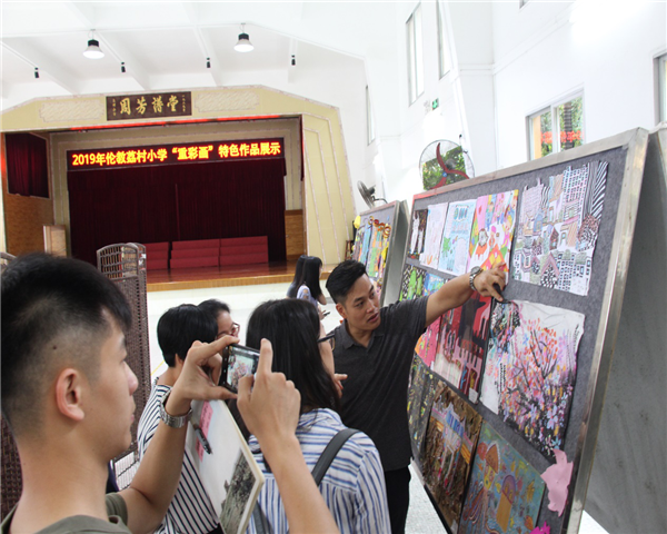 活動(dòng)在倫教街道小學(xué)美術(shù)中心教研組組長(zhǎng)鄺寶均老師主持下,首先參觀了“荔村小學(xué)美術(shù)特色作業(yè)展示”,到會(huì)的老師們?cè)趯W(xué)生的引領(lǐng)和講解下在禮堂進(jìn)行觀展。此次展出的美術(shù)特色作業(yè)內(nèi)容豐富多彩,形式多種多樣。有裝飾味道強(qiáng)的重彩畫(huà),有別具匠心的拼貼畫(huà),有活靈活現(xiàn)的手工紙花,有書(shū)寫(xiě)端正的手抄報(bào),還有創(chuàng)意無(wú)限的手工立體作品和橡皮泥作品等等,內(nèi)容豐富的作品彰顯了老師們?cè)O(shè)計(jì)的豐富與巧妙,更凸顯了學(xué)生們的認(rèn)真努力和奇思妙想。在展覽上,荔村小學(xué)的學(xué)生們清晰大膽地介紹自己的作品和回答老師們的問(wèn)題,同時(shí)認(rèn)真地傾聽(tīng)老師們的建議。老師們一邊認(rèn)真地觀看,一邊時(shí)不時(shí)拿出手機(jī)拍照記錄,作為自己今后輔導(dǎo)的參考。