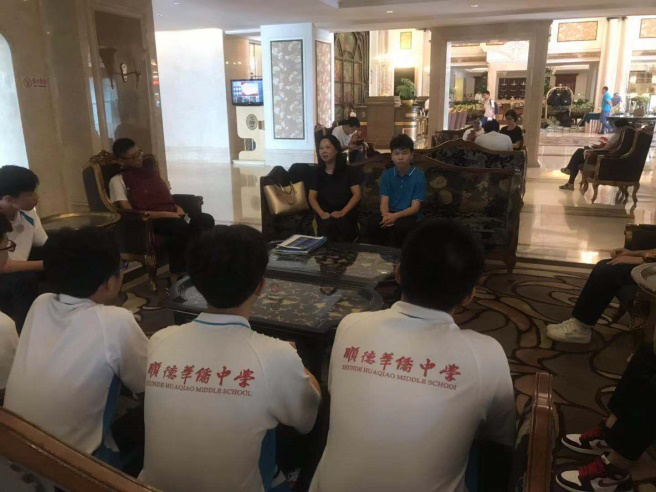 張映紅副校長趕到隊員就住酒店,給隊員加油打氣,提出:“務(wù)實、扎實、真實的交流,虛心、真心、熱心的展現(xiàn)”的指導思想,希望同學們能夠盡力展現(xiàn)新時代僑中人的風采。