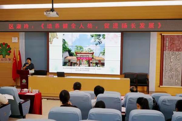 活動(dòng)最后,容山中學(xué)區(qū)淑玲校長(zhǎng)做了《立足兩本文化,培養(yǎng)容山人格》的專(zhuān)題分享。區(qū)校長(zhǎng)就容山中學(xué)“書(shū)院文化”建設(shè)多年的心路歷程,跟大家分享了心理健康教育的經(jīng)驗(yàn)與心得,其浸潤(rùn)式的文化育心與系統(tǒng)化的專(zhuān)業(yè)育心相結(jié)合的特色心育路徑,可以為心理健康教育提供很好的借鑒。