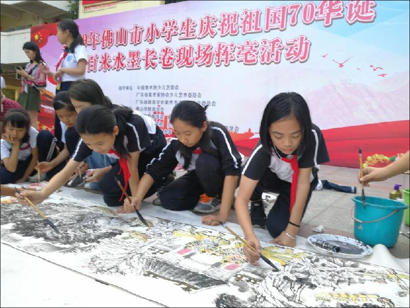 2019年10月16日下午,佛山市小學(xué)生慶祖國70華誕百米水墨長卷現(xiàn)場揮毫活動在佛山南海石門實(shí)驗(yàn)小學(xué)舉行。本次活動旨在引導(dǎo)廣大少年兒童以實(shí)際行動向偉大祖國70周年生日獻(xiàn)禮,是進(jìn)一步落實(shí)習(xí)總書記關(guān)于學(xué)校美育工作的重要指示和充分展示我省學(xué)校美育成果,促進(jìn)兒童水墨教學(xué)工作再上新臺階的重要契機(jī)。通過本次活動,學(xué)生接受了愛國主義教育,激發(fā)了愛國熱情。
