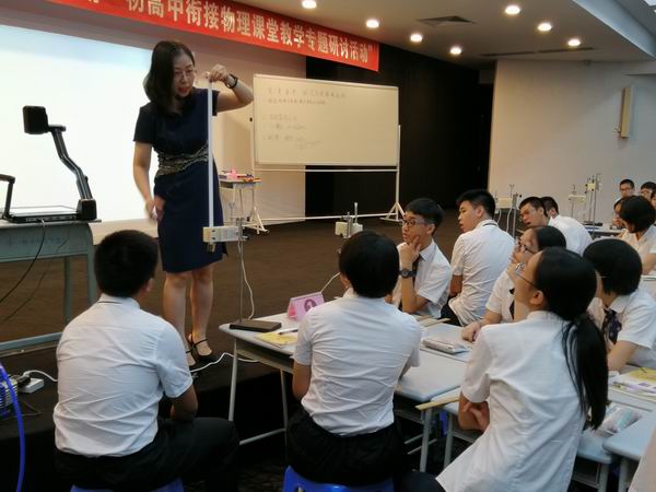 9月18日,順德區(qū)物理學科“初高中銜接物理課堂教學專題研討活動”在廣東順德德勝學校順利開展,參加活動的人員有佛山市教研室物理教研員朱建平教授、順德區(qū)教育發(fā)展中心教研室任富華副主任、100多位初高中物理教師?;顒佑身樀聟^(qū)物理教研員周璐老師主持。