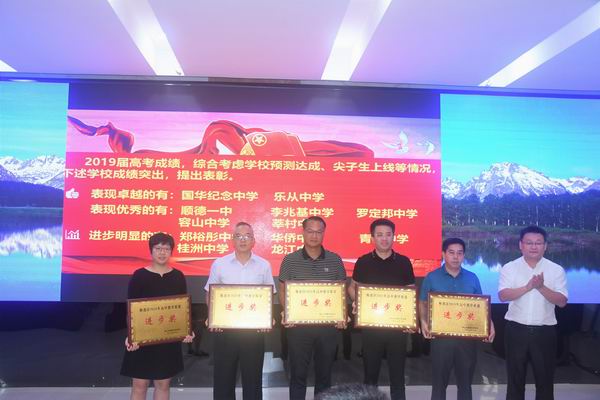 王濤副主任為獲得2019年高考進步獎的學校頒獎