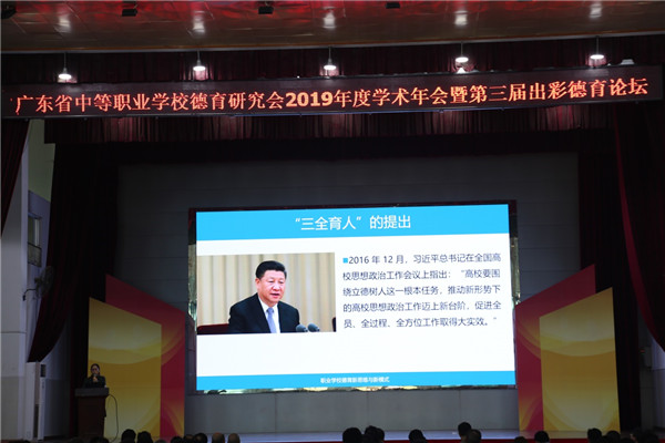 2020年1月4日,廣東省中等職業(yè)學(xué)校德育研究會(huì)2019年度學(xué)術(shù)年會(huì)暨第三屆出彩德育論壇的“出彩德育專題報(bào)告”“出彩德育論壇”在容桂職校禮堂順利舉行。三百多名來(lái)自省內(nèi)外的德育同仁齊聚順德區(qū)第四職教集團(tuán)屬校容桂職校,回望過(guò)去,廣東中職砥礪前行,一路芳華,出彩驕人!德育人用習(xí)近平新時(shí)代中國(guó)特色社會(huì)主義思想鑄魂育人,貫徹落實(shí)全國(guó)教育大會(huì)精神,凸顯了廣東德育堅(jiān)持改革創(chuàng)新,順應(yīng)時(shí)代要求,落實(shí)立德樹人根本任務(wù)的新思考、新探索、新方法!