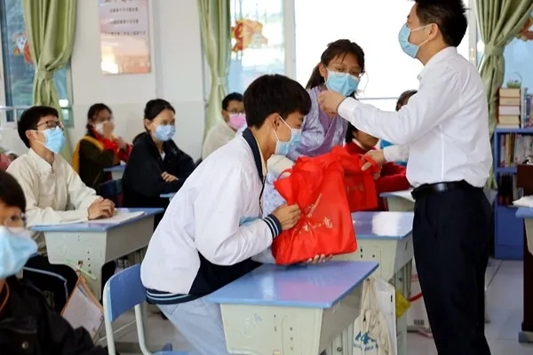 正值藏歷新年,彭聰恩特地前來看望江義中學(xué)西藏班師生,向藏族學(xué)生致以誠摯的節(jié)日問候,勉勵(lì)學(xué)生不忘黨恩、聽黨話、跟黨走,勤奮學(xué)習(xí),將來以實(shí)際行動(dòng)報(bào)效祖國。彭聰恩看到西藏班的學(xué)生個(gè)個(gè)陽光向上很高興,囑咐全體學(xué)生按學(xué)校的要求繼續(xù)做好個(gè)人防護(hù)。隨后,彭聰恩向西藏班學(xué)生代表贈送了防控物資。