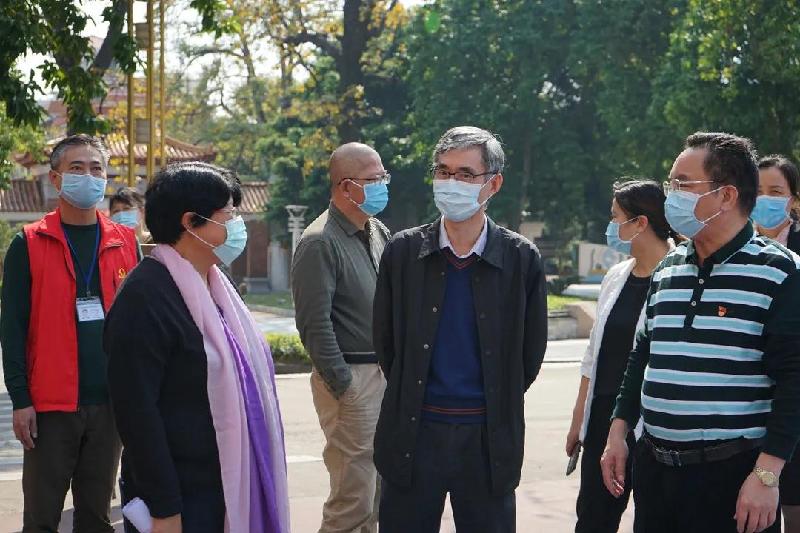 順德區(qū)副區(qū)長、容桂街道黨工委書記劉國興(右3)等領(lǐng)導(dǎo)到容山中學(xué)檢查疫情防控工作