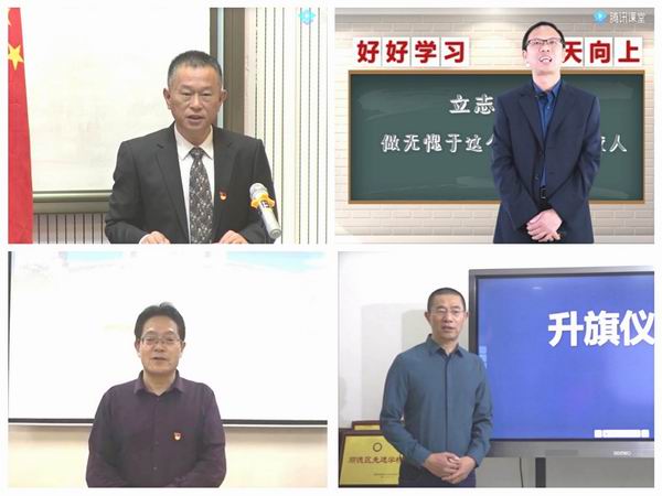 學(xué)生參加線上升旗儀式