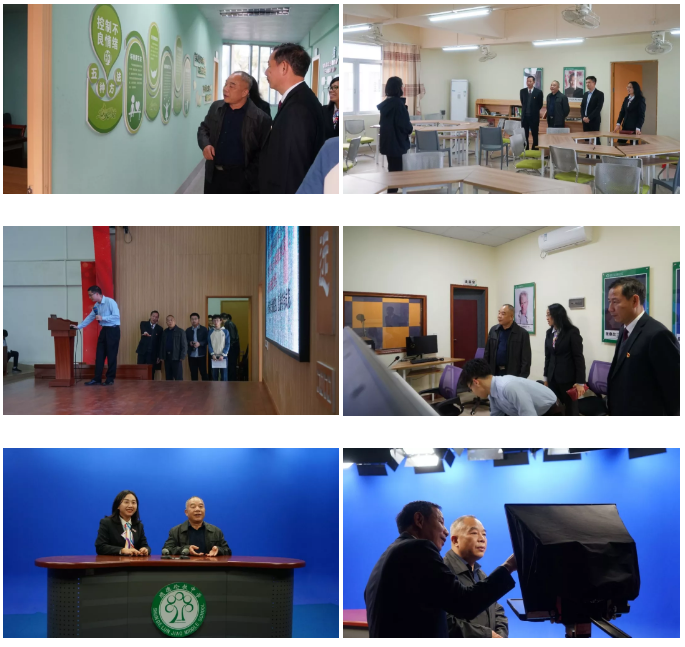 到校后,驗(yàn)收組分組開展實(shí)地察看、檔案材料審閱、談話交流等方式對(duì)我校進(jìn)行全面考察。驗(yàn)收組一行在我校彭安生校長(zhǎng)和行政班子成員的陪同下,首先對(duì)學(xué)校的校容校貌、校園文化、場(chǎng)室建設(shè)等硬件設(shè)施進(jìn)行實(shí)地查看,對(duì)創(chuàng)建工作情況進(jìn)行全面詳細(xì)的了解,深入到教學(xué)樓、飯?zhí)?、傳媒教學(xué)基地、圖書室、心理輔導(dǎo)室等場(chǎng)所進(jìn)行察看,過程中頻頻點(diǎn)贊。