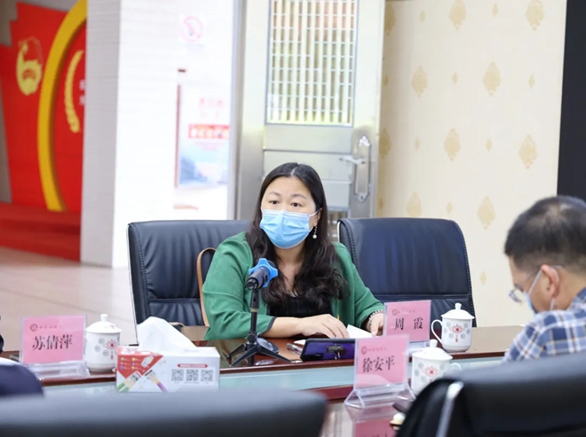 江義中學(xué)副校長周霞以《網(wǎng)絡(luò)智慧課堂同心助力中考》為主題就初三級線上教學(xué)精準(zhǔn)備考情況進(jìn)行匯報(bào)。匯報(bào)中周霞以“提前規(guī)劃整體部署、廣泛參與深度跟進(jìn)、網(wǎng)絡(luò)教研同心助力、穩(wěn)住效果不斷提升”四個(gè)維度解讀了江義中學(xué)初三級分層走班教學(xué)實(shí)現(xiàn)了因材施教、家校合作齊抓共管、目標(biāo)驅(qū)動(dòng)隔空跟進(jìn)的三大優(yōu)點(diǎn)。
