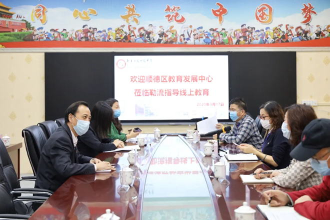 3月17日,順德區(qū)教育發(fā)展中心黃晨曦副主任一行來到江義中學(xué)調(diào)研督查勒流街道疫情期間在線教育工作,勒流街道教研室副主任朱湘紅匯報(bào)了疫情期間街道">