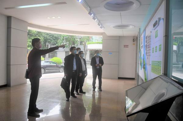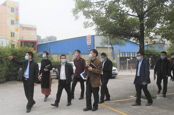彭聰恩區(qū)長(zhǎng)(左一)視察環(huán)境,關(guān)心教師發(fā)展中心建設(shè)等工作