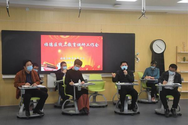 首先,區(qū)教育局副局長(zhǎng)、區(qū)教育發(fā)展中心主任張毅同志從統(tǒng)一課程安排、統(tǒng)一課程資源、統(tǒng)一使用平臺(tái)以及統(tǒng)一教研評(píng)價(jià)四方面匯報(bào)了我區(qū)線上教育前期的部署落實(shí)情況。為確保我區(qū)線上教育系統(tǒng)有序、優(yōu)質(zhì)高效地組織開展,在區(qū)教育局統(tǒng)一指揮下,區(qū)教育發(fā)展中心上下一心,積極開展線上教學(xué)的業(yè)務(wù)指導(dǎo)工作,在學(xué)科教學(xué)指引、教學(xué)方式、教學(xué)時(shí)長(zhǎng)和教學(xué)安排等方面作出了明確規(guī)定和要求,并安排各學(xué)科教研員及時(shí)做好“線上+線下”“個(gè)人+集體”的教學(xué)視導(dǎo)工作。