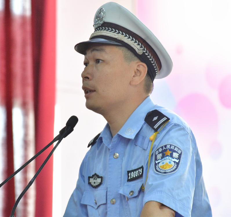 散學(xué)禮第一項議程:均安法制宣傳員伍詩挺警官做法制安全講座。