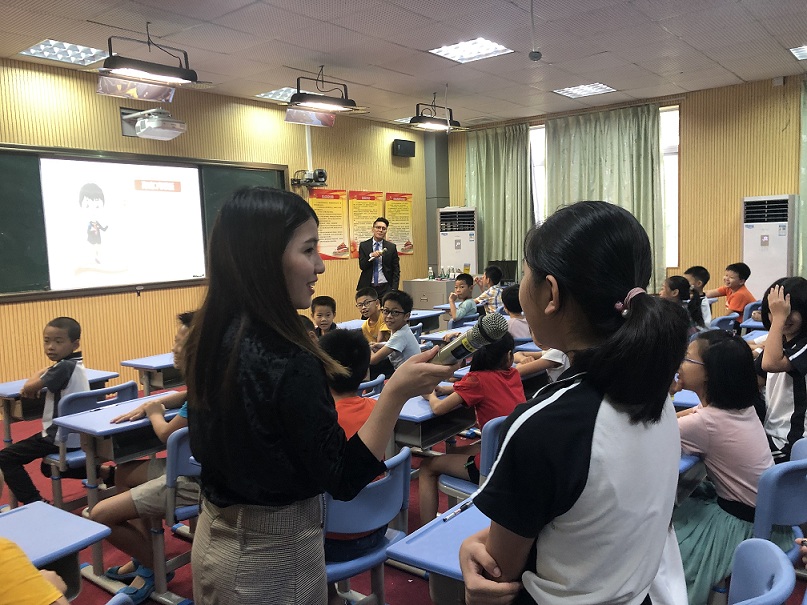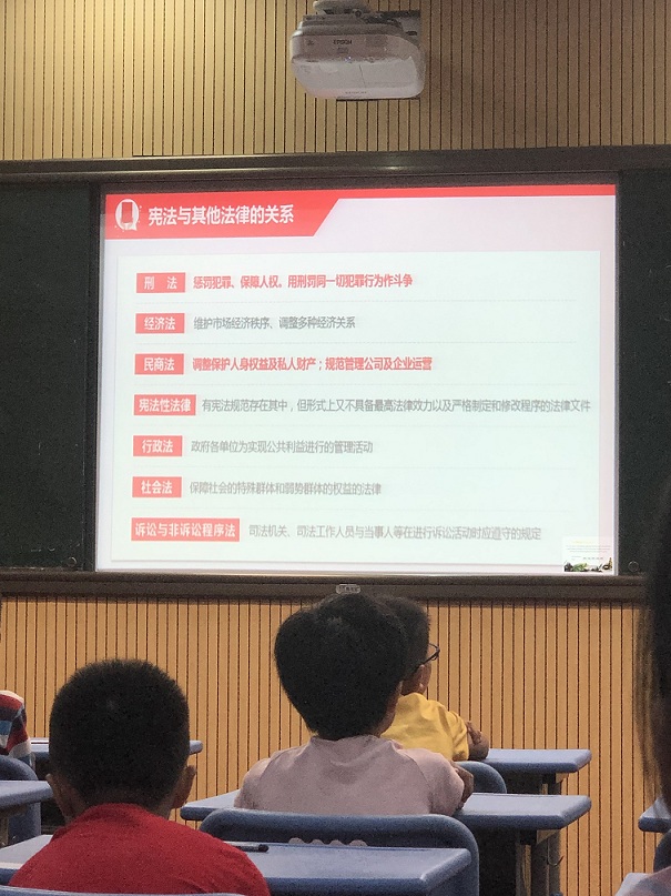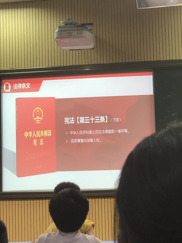在此次課堂過(guò)程中,律師們用幽默風(fēng)趣的語(yǔ)言吸引了孩子們的注意。采取用問(wèn)題引導(dǎo)孩子們的方式,漸漸地引領(lǐng)孩子們進(jìn)入法律的殿堂之中,最終莊嚴(yán)地走到憲法面前,首先,律師們通過(guò)詢問(wèn)孩子們對(duì)于法律的了解程度、對(duì)于憲法規(guī)定的基本權(quán)利的種類以及對(duì)于其他下位法如刑法具體的規(guī)定內(nèi)容,逐步加深孩子們對(duì)于法律的知覺,從一開始的在遠(yuǎn)方慢慢走近,最后真正地感受到法律的關(guān)懷,通過(guò)這一個(gè)過(guò)程,相信法律不再像同學(xué)們一開始認(rèn)為地遙不可及,而是時(shí)時(shí)刻刻圍繞在身邊并且無(wú)時(shí)無(wú)刻在保護(hù)著公民權(quán)利與自由。
