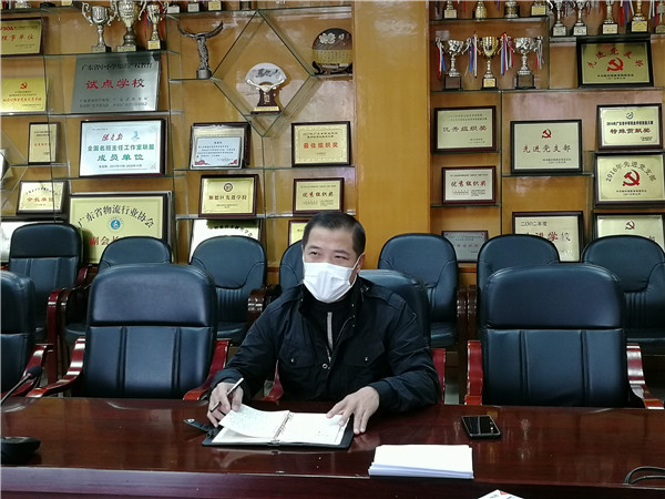 隨后,梁澤洪校長匯報(bào)了學(xué)校的疫情防控工作。一是組織管理。早部署、早落實(shí)。學(xué)校分別于1月20日、1月24日開始收集統(tǒng)計(jì)學(xué)生、教職員工的相關(guān)信息,在上級通知下發(fā)之前已有序開展相關(guān)防控工作。于2月1日召開了行政擴(kuò)大會(huì)議,于2月4日召開了行政會(huì),2月6日是第三次防控會(huì)議。二是制度建設(shè)。制定了陳村職業(yè)技術(shù)學(xué)校新型肺炎疫情防控工作實(shí)施方案、開學(xué)方案、突發(fā)公共衛(wèi)生事件應(yīng)急預(yù)案、防控方案(學(xué)生管理)、“停課不停教、停課不停學(xué)”工作實(shí)施方案等,指導(dǎo)工作,規(guī)范管理。三是工作推進(jìn)。每天做好信息上報(bào),掌握師生出行軌跡和健康狀況。建立一人一冊,精準(zhǔn)排查重點(diǎn)人員,點(diǎn)對點(diǎn)監(jiān)控。各工作小組,分工守責(zé),落實(shí)廣東省教育廳的“四精準(zhǔn)、四統(tǒng)一”。在疫情管理和控制方面,加強(qiáng)對六類重點(diǎn)人群管理,落實(shí)居家隔離師生監(jiān)控,規(guī)劃采購基本防控用品。在宣傳和教育方面,利用各種媒體、各種手段發(fā)布防控信息及宣傳資料,對居家隔離師生做好心理疏導(dǎo),制作學(xué)校防控工作簡報(bào)。成立陳村職業(yè)技術(shù)學(xué)校黨群先鋒隊(duì),已62人次分別參加了永興社區(qū)、舊圩社區(qū)、仙涌村委會(huì)和錦龍社區(qū)的防控工作。校社聯(lián)手志愿先行,同心協(xié)力抗擊疫情,讓黨旗在防控疫情斗爭第一線高高飄揚(yáng)。