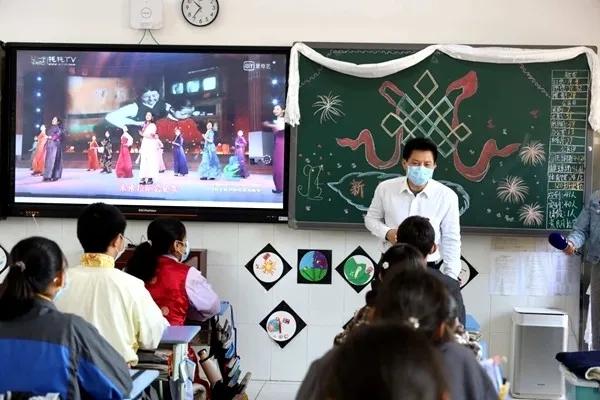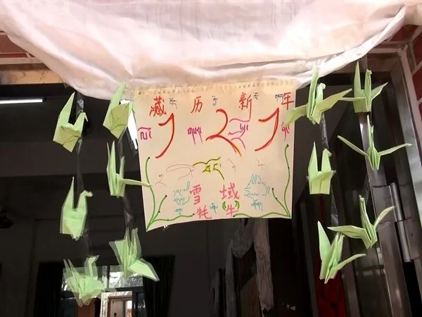 學(xué)生們一早起床后穿好了漂亮的藏服,忙碌著布置起教室、宿舍,門(mén)口掛上新的哈達(dá),黑板上寫(xiě)滿了新年的祝福,跟遠(yuǎn)在西藏的家長(zhǎng)視頻拜年,祝愿家人身體健康,祖國(guó)繁榮富強(qiáng),班級(jí)的迎新活動(dòng)中,載歌載舞,用歌聲迎接藏歷鐵鼠新年的到來(lái)。