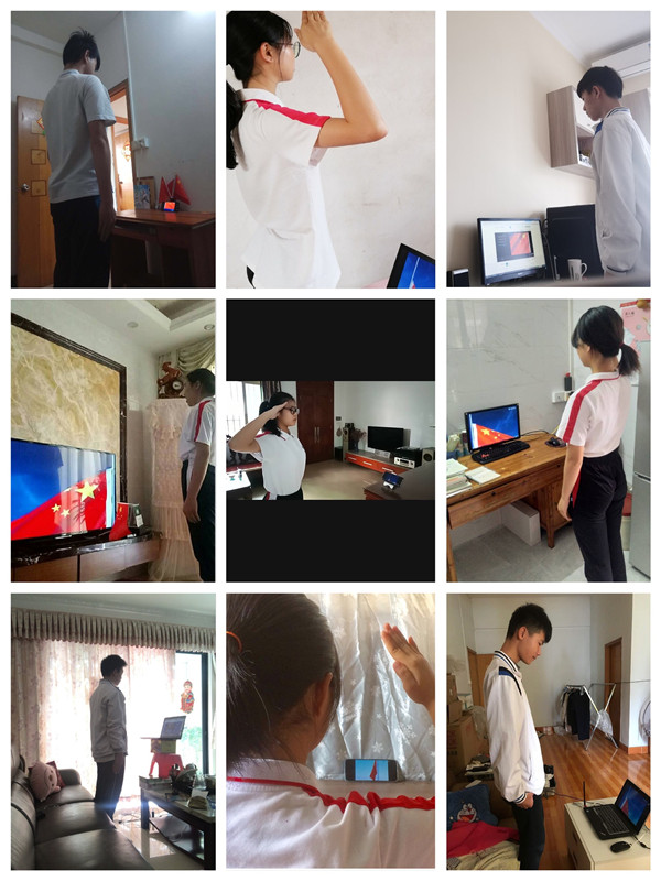 隨著國(guó)歌響起,鮮艷的五星紅旗冉冉升起,學(xué)校全體行政在學(xué)校,全體同學(xué)在家中整齊肅立,注視著國(guó)旗,唱響國(guó)歌。這是一場(chǎng)特殊的升旗儀式,更是一場(chǎng)特別的“開(kāi)學(xué)典禮”。