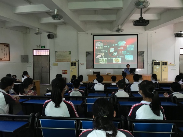 沙溪鎮(zhèn)公安分局緝毒民警葉雍赟警官在講座中首先播放了鐘南山院士代言的毒品預(yù)防教育宣傳片,倡導(dǎo)青少年遠離毒品,享受“無毒青春,健康生活”。