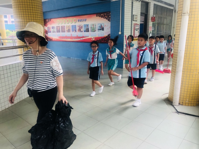 大掃除志愿活動(dòng)中,黨員、教師志愿者隊(duì)伍在黃金奇校長(zhǎng)的帶領(lǐng)下,重點(diǎn)針對(duì)校園周邊環(huán)境進(jìn)行了徹底清掃,進(jìn)一步排查牛皮癬、衛(wèi)生黑點(diǎn)等,做好門(mén)前三包清潔保潔工作。同時(shí),全體少先隊(duì)員以中隊(duì)為單位,在各輔導(dǎo)員的帶領(lǐng)下,對(duì)各教室、學(xué)校廣場(chǎng)以及植物園等公共區(qū)域進(jìn)行大清掃。通過(guò)全校大掃除活動(dòng),進(jìn)一步改善了學(xué)校及周邊環(huán)境衛(wèi)生面貌,使“創(chuàng)文創(chuàng)衛(wèi)”工作得到進(jìn)一步落實(shí)和宣傳,同時(shí)養(yǎng)成了隊(duì)員們良好的勞動(dòng)及衛(wèi)生習(xí)慣。