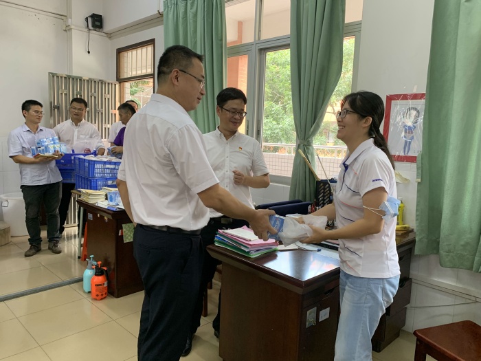 徐鎮(zhèn)長一行走進各年級各學科辦公室,親切詢問了老師們的工作、生活情況,轉(zhuǎn)達了沙溪鎮(zhèn)黨委、政府對老師們的關(guān)懷和慰問,親手向老師們送上節(jié)日慰問品,感謝老師們在教書育人崗位上的辛勤耕耘。徐鎮(zhèn)長肯定了沙溪中學老師們的教育教學成績和目前所展現(xiàn)出來的精神風貌,鼓勵大家要深入鉆研教學業(yè)務(wù),踐行教學改革。