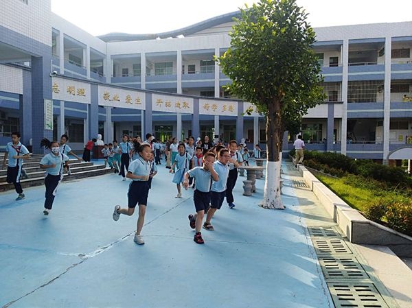 急促的警報聲響起后,各班以最快的速度按照計劃路線迅速撤離教學樓,到操場集中。各年級行政、級長、班主任、科任老師分布在各層樓樓梯口、操場斜坡處進行疏導,指揮學生有序撤離,不要推拉擁擠,避免摔倒、踩踏。同學們在老師的引導下,嚴格遵守秩序,謹記科學規(guī)范的逃生動作,齊心協(xié)力做好演練。只用了3分鐘,全校一千多名師生就安全撤離到操場。到達操場后,各班立即清點人數(shù)、整理好隊伍,開始認真聆聽黃賢軍校長講話。黃校長表揚了孩子們的出色表現(xiàn),強調當危機情況發(fā)生時,孩子們一定要冷靜科學地自救。平時在校園里也要注意安全,嚴格遵守學校的各項規(guī)定,從而保護自己和別人不受傷害。黃校長還提醒老師們,要切實抓好學生安全教育工作,繃緊安全之弦,一刻都不能放松。每天值日的老師在崗位上要細心觀察,及時制止學生課間不安全行為,發(fā)現(xiàn)并排除安全隱患。演練結束后,各班排著整齊的隊伍有序回到班級。