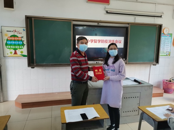 為更好地開展返校復(fù)課疫情防控演練,學(xué)校根據(jù)上級部門的要求詳細(xì)制定了演練方案,并根據(jù)演練方案準(zhǔn)備好演練物資,于4月14日下午2點召開全校員工專題演練安排會議。會議開始前,劉奧鵬校長先向全體教師員工介紹了學(xué)校的陳綠清健康衛(wèi)生副校長,并頒發(fā)了聘書。隨后,劉奧鵬校長對演練進行了總體安排,提出了明確要求,使每一位參與人員熟悉流程、明確職責(zé),確保每一個環(huán)節(jié)有序進行,為演練的順利開展奠定了基礎(chǔ)。