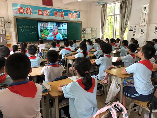 下午,各中隊開展少先隊建隊日主題活動。在活動中,各中隊輔導(dǎo)員首先帶領(lǐng)全體少先隊員重溫入隊時刻;分別從入隊目的、隊旗、隊徽、紅領(lǐng)巾的來歷、隊禮、隊委標(biāo)志、隊歌、呼號、入隊誓詞等方面進(jìn)行學(xué)習(xí),增強了隊員們對少先隊知識的認(rèn)識與理解和對紅領(lǐng)巾的崇敬感、使命感。全體隊員收看了《紅領(lǐng)巾與祖國共成長——南粵紅領(lǐng)巾獻(xiàn)禮少先隊建隊70周年節(jié)目》。隨后,各中隊開展“紅領(lǐng)巾與祖國共成長分享會”。讓隊員們分享參加“紅領(lǐng)巾與祖國共成長”的成果和收獲,說一說祖國建設(shè)新成就, 談一談身邊生活新變化, 曬一曬參加少先隊活動帶來的成長和進(jìn)步, 明確下一步打算和目標(biāo), 許心愿、立志向, 從我出發(fā), 爭做新時代的好隊員。
