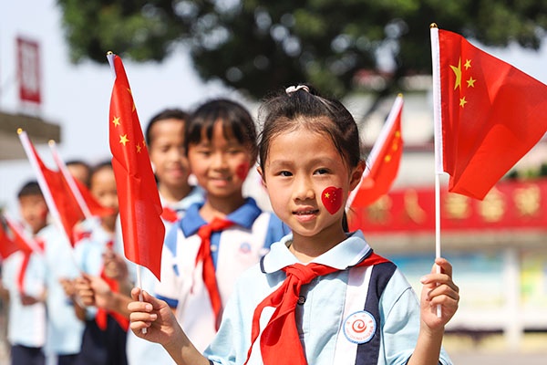 一個個鏗鏘有力的音節(jié),一首首慷慨激昂的歌曲,一張張充滿期盼的笑臉,都表達著對祖國的美好祝愿。熱烈慶祝中華人民共和國成立70周年,祝愿祖國繁榮昌盛,國泰民安!