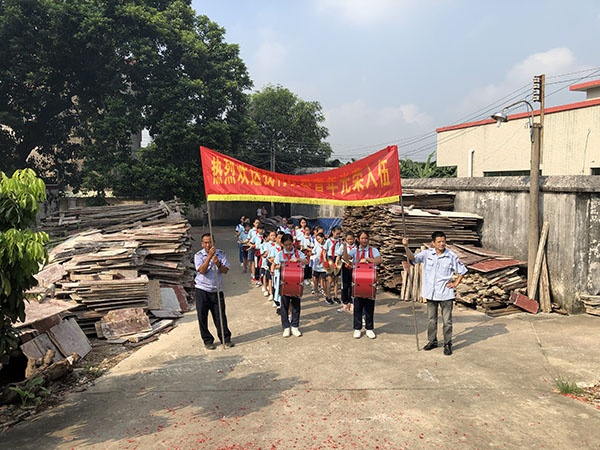 9月9日上午,沙溪鎮(zhèn)濠涌村內鼓號響亮,上午八點半,濠涌小學鼓號隊的隊員們穿著整齊的服裝,佩戴著鮮艷的紅領巾,在大隊輔導員陳慧超老師的帶領下,踩著整齊的步伐參與了濠涌村歡送新兵工作。