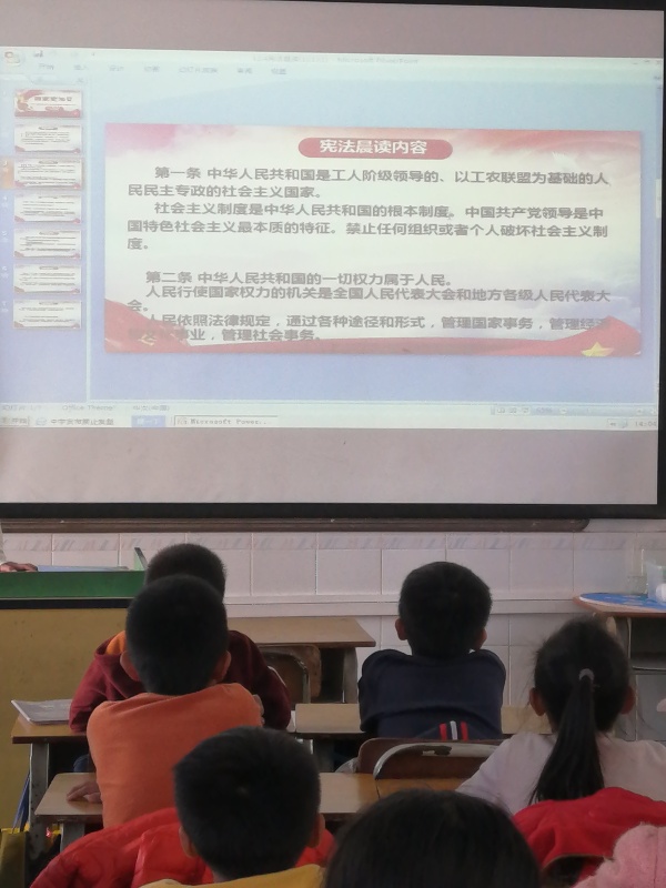 12月2--4日7:50,康樂小學(xué)利用晨讀時(shí)間組織了“憲法晨讀活動(dòng)”,各班選擇憲法的相關(guān)條款進(jìn)行了集體朗讀。12月2日8:10全校師生齊聚大操場(chǎng),參加“國(guó)家憲法日”教育宣傳活動(dòng)啟動(dòng)儀式并舉行特殊的升國(guó)旗儀式。吳偉標(biāo)校長(zhǎng)在教師周例會(huì)上動(dòng)員,要求全體教師按照上級(jí)部門要求,積極主動(dòng)開展憲法學(xué)習(xí),在工作中認(rèn)真執(zhí)行相關(guān)規(guī)定,依法從教,廉潔從教,不斷提高自己的政治素養(yǎng)和職業(yè)道德水平。