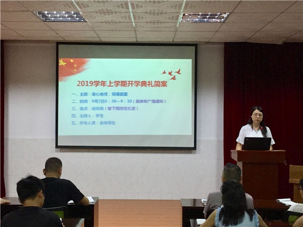 最后由分管德育的蔣莉副校長就德育工作進行系統(tǒng)安排,首先提出本學(xué)期德育工作重點和常態(tài)管理中的側(cè)重點;然后安排開學(xué)第一天的工作:如班主任到校后督促值日生搞好清潔衛(wèi)生,檢查學(xué)生到校情況,同時及時聯(lián)系沒有到校的學(xué)生家長;接著第一節(jié)為班務(wù)課,各班主任收齊賽假作業(yè),分發(fā)新書,對學(xué)生進行安全思想教育,期間安排學(xué)生觀看《安全第一課》;下午第二節(jié)全校大清潔,副班主任協(xié)助班主任管理學(xué)生搞好清潔,要特別注意學(xué)生的安全問題。