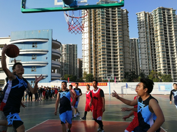 開幕式結束以后,第一場比賽就開始了。家長組首先開場的是五年級家長和六年級家長。只聽哨子一響,雙方隊員激情開賽,精彩迭起,吸引了眾多師生們、家長們駐足觀賞,不時發(fā)出陣陣歡呼聲和喝彩聲。學生組也不甘示弱,首先是一(1)班和一(2)班以及三(1)班和三(2)班分別在3、4號籃球場上進行火熱比拼。只見場上運動員們頑強拼搏,一次次進攻,一次次防守。籃球,猶如一團火焰,在他們的手中傳遞,上下翻飛。發(fā)球、運球、傳球,配合默契,讓在場觀看的同學大呼過癮。老師們在場邊大聲指揮,同學們加油吶喊響徹云霄,場面激烈而和諧,不但提高了籃球的競技水平,還增進了同學和老師間的感情。