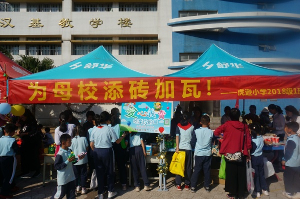 弘揚(yáng)博愛,慈善為懷,行善積福是沙溪人的優(yōu)良傳統(tǒng),也是中華民族傳統(tǒng)美德的重要體現(xiàn)。一年一度的12·8慈善活動如期而至,中山市沙溪鎮(zhèn)虎遜小學(xué)為了傳承沙溪人優(yōu)良傳統(tǒng),營造校園隆都慈善文化氛圍,培養(yǎng)學(xué)生從小樹立樂善好施、樂于奉獻(xiàn)的良好品質(zhì),鍛煉他們的社會實(shí)踐能力,為沙溪教育事業(yè)添磚加瓦。2019年11月22日下午,虎遜小學(xué)于學(xué)?;@球廣場舉行了主題為“獻(xiàn)愛心、行善舉,為沙溪教育事業(yè)齊出力”的12·8慈善籌款活動。