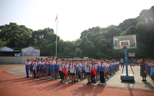 此次活動分為兩個環(huán)節(jié)。第一環(huán)節(jié),舉行莊嚴(yán)的升旗儀式。在激昂的國歌聲中,鮮艷的五星紅旗冉冉升起。全體師生面對國旗,行注目禮,少先隊員敬隊禮。第二環(huán)節(jié),大隊長吳雨晴宣布“紅領(lǐng)巾與祖國共成長,爭做新時代好隊員”活動正式開始。全體隊員聽口令,出隊旗。首先,由指揮員張紫淇帶領(lǐng)全體隊員唱隊歌。隊員們個個精神抖擻,唱出對少先隊的熱愛。隨后,大隊長請樂群小學(xué)少工委主任楊明校長給予全校少先隊員寄語和勉勵。在講話中,楊校長要求隊員們以祖國未來接班人的姿態(tài)展望未來,好好學(xué)習(xí),為祖國貢獻力量,極大地激勵了少先隊員們的熱情。緊接著,活動的高潮是進行四年級換大號紅領(lǐng)巾儀式。四年級隊員紛紛上臺排成四排,昂首挺胸,接受這光榮的授予。優(yōu)秀隊員代表為小隊員們一一授予了大號紅領(lǐng)巾,隊員們臉上露出花朵般的笑容。然后,由少先隊優(yōu)秀代表胡穎瀅作主題為《習(xí)爺爺教導(dǎo)記心中》的演講。最后,全體隊員右手握拳,在學(xué)校大隊輔導(dǎo)員陳雙燕老師的帶領(lǐng)下重溫入隊誓詞,莊嚴(yán)宣誓與呼號。