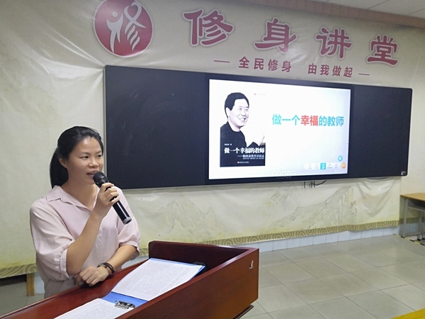 分享會由黃淑華老師拉開序幕,黃老師分享的是陶繼新的《做一個幸福的教師》。陶繼新老師以其獨特的人格魅力、淵博的知識、豐厚的文學素養(yǎng)、詩化的語言、豐富翔實的資料以及對教育的一種憂患意識,深刻地闡述了讀書教學相得益彰,以及讀書對教師發(fā)展和學生成長的重要影響,使老師們走向終生幸福的文化之旅。黃老師閱讀過后,感悟深刻,最后說:“做一個幸福的教師,用溫熱的心靈交融稚嫩的心靈,文化素養(yǎng)也許就是滋潤心靈的甘醇?!?/p>