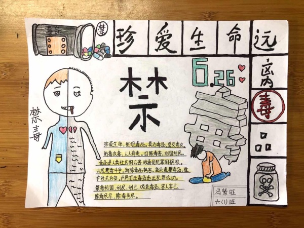 通過線上禁毒主題班會課,同學(xué)們對禁毒知識有了很大的提高,孩子們紛紛表示:一定遠(yuǎn)離毒品,做陽光少年。很多同學(xué)在家通過搜集毒品資料,撰寫觀后感和自主制作了“珍愛生命,遠(yuǎn)離毒品”手抄報、禁毒小畫冊、禁毒小書簽等活動。