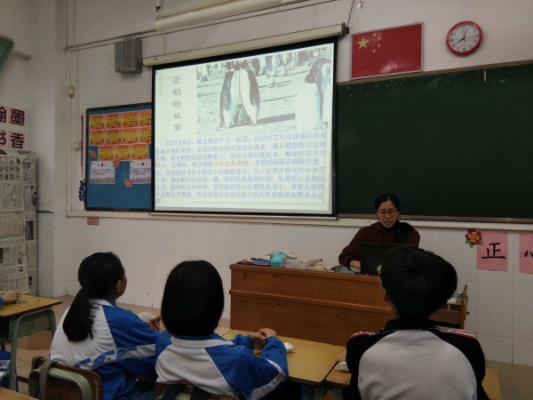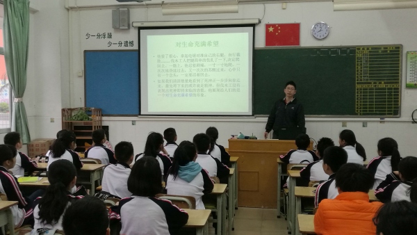 本次開學(xué)禮的第一個(gè)重要議程,就是以“讓生命之花綻放光彩”為主題的生命教育。課上以小螳螂的出生是用爸爸的性命換來(lái)的這樣生動(dòng)而有感人的小故事突出生命來(lái)之不易,人類孕育的艱辛,從而引導(dǎo)學(xué)生學(xué)會(huì)珍惜生命、珍愛生命,生命是如此脆弱,我們要善待自己的生命,保護(hù)好生命,讓生命綻放出絢爛的光彩!最后,以小組為單位進(jìn)行思維拓展活動(dòng),從“荒島生涯 ”和“談判專家”兩個(gè)主題進(jìn)行想象拓展,學(xué)生在小組討論和發(fā)言中也紛紛展現(xiàn)了對(duì)生命的尊重、對(duì)生命的珍惜。