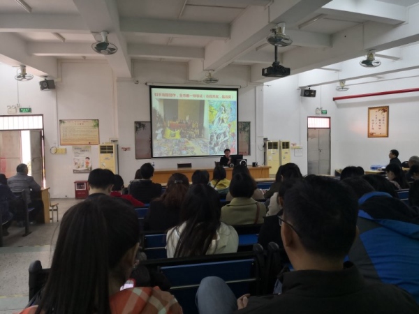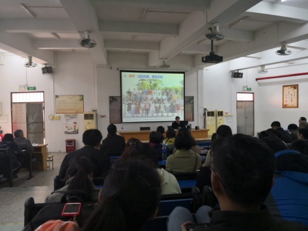 首先,華校長以“厲害了,我們的2018”為題開啟了年度總結(jié)的第一篇章。2018年,沙中的影視課程研究可謂碩果累累: 2018年1月或教育部頒發(fā)的“全國優(yōu)秀德育工作案例”, 2018年6月影視黨建課程研究獲省教廳立項,2018年8月《影視德育課程》入選北京教育出版社出版的專著《課程走向未來》。華校長表示,沙中的影視德育課程不會止步于此,而將繼續(xù)走向更好的未來。隨后,華校長用“鶴翔”、“鶴彩”、“鶴韻”、“鶴學(xué)”、“鶴師”五個詞分別總結(jié)了沙中體育、美術(shù)、音樂、教學(xué)質(zhì)量、教師成長等各方面的成就,展示了沙溪中學(xué)“鶴文化”特色教育的教學(xué)成果,其中特別多展示了去年取得優(yōu)異成績的英語科組教學(xué)上的 “神奇魔法”,使全體教師在總結(jié)中進(jìn)一步提升。