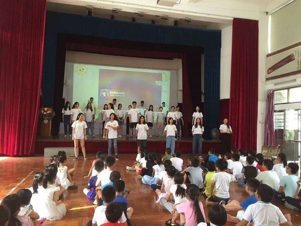 7月8日早上,青馬服務隊英語夏令營見面會在中山市申明亭學校禮堂順利舉行。申明亭學校鄭育美校長和寧吉紅、賴強強、劉志雄三位主任和參加夏令營的學生,以及全體青馬服務隊的隊員參加了見面會。
