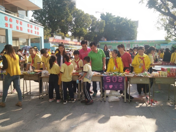 11月22日下午,華強(qiáng)學(xué)校內(nèi)操場(chǎng)人聲鼎沸,擠滿了學(xué)生和家長(zhǎng),原來是12.8義賣活動(dòng)開始了。為了讓慈善文化深入孩子們的心里,學(xué)校積極動(dòng)員家長(zhǎng),除了在班級(jí)進(jìn)行捐款活動(dòng)外,還組織了深受同學(xué)們歡迎的義賣活動(dòng)。各個(gè)班級(jí)的家長(zhǎng)牽頭,帶領(lǐng)學(xué)生參與到慈善義賣中。有的孩子們將自己的玩具、二手書拿出來拍賣;有的孩子則自己制作美食出售;還有的學(xué)生現(xiàn)場(chǎng)DIY手工飾品,吸引力不少關(guān)注。家長(zhǎng)們以愛之名,樂在其中,現(xiàn)場(chǎng)制作爆米花、糕點(diǎn)等,甚至還把“熊寶寶”請(qǐng)到現(xiàn)場(chǎng)拍照。