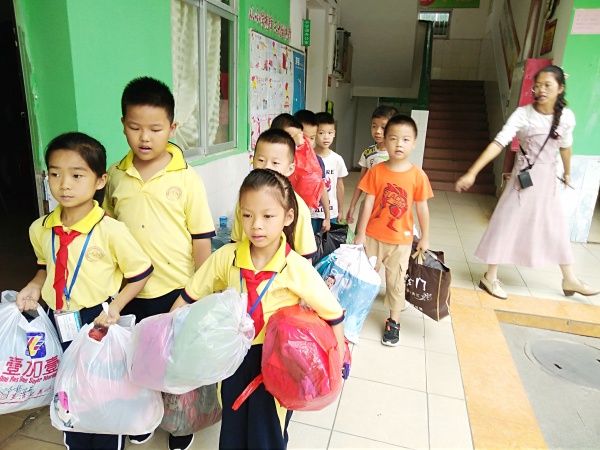 10月28日早上的升旗儀式,校長劉鍵向全體師生發(fā)出“情系山區(qū) 捐獻(xiàn)衣物”舊衣物捐贈活動的倡議。倡議活動結(jié)束后,全校師生積極參與,各中隊輔導(dǎo)員回到中隊再次發(fā)動隊員們進(jìn)行舊衣物回收的倡議,請隊員們將用不著的舊的衣服、書包、鞋子、公仔和被單打包好,于29日早上一起帶到學(xué)校來進(jìn)行“情系山區(qū) 捐獻(xiàn)衣物”“一件衣服,一份溫情”的舊衣服回收活動。這次的愛心捐贈活動也得到了家長們的大力支持,有的家長主動和老師聯(lián)系,把自己家里閑置的衣物全部捐贈出來;有的孩子小捐贈的衣物較多,家長就主動把衣物送到學(xué)校來……一個小小的舉動,匯聚成了濃濃的暖流。在短短的時間里,學(xué)校共收集到大量學(xué)生捐贈的衣物。 10月29日下午,在志愿者代表的協(xié)力幫忙下,學(xué)校把這批捐贈的物品交給鄰舍社會工作服務(wù)中心工作人員。