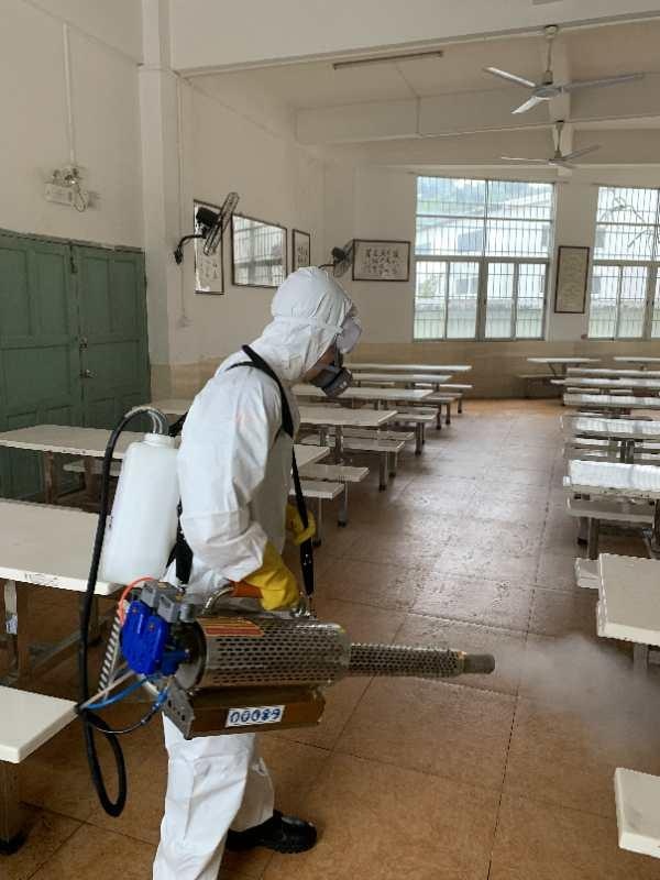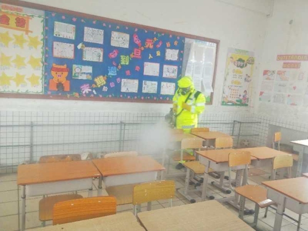 為做好學(xué)校返校復(fù)學(xué)準(zhǔn)備工作,神灣中心小學(xué)邀請到了中山市藍天救援隊,完成校園消毒防疫任務(wù),為師生提供安全衛(wèi)生的校園環(huán)境。在消殺工作開始之前,隊員們要進行一系列的準(zhǔn)備工作,組裝消毒工具、噴灑設(shè)備,佩戴防護工具,檢查噴灑藥物等。繁復(fù)的準(zhǔn)備工作結(jié)束后,只見隊員們個個全副武裝,攜帶噴灑設(shè)備,穿過校園,認(rèn)真對學(xué)校所有室外公共區(qū)域和各樓層的教室、功能室、教師辦公室、衛(wèi)生間等室內(nèi)場所進行專業(yè)噴灑消毒。在防疫消毒的過程中,隊員們嚴(yán)格按照程序和規(guī)程,忙碌有序地開展工作,對各個衛(wèi)生死角進行消毒,確保消毒做到全面、徹底。他們的嚴(yán)謹(jǐn)踏實為全校師生順利返校筑牢了安全防線,校園里忙碌穿梭的救援隊身影也成為了一道亮麗的風(fēng)景線。