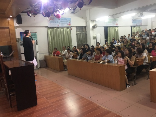 在講座開始之初,陳干事就學校的辦學領導理念和家庭教育的重要性做了一個簡短介紹。其中就說到人這一生當中要接受三種教育,即家庭教育,學校教育和社會教育。而對一個孩子最重要的便是人生開始階段的家庭教育。正確的教育孩子,家長需要形成正確的養(yǎng)育觀念,掌握切合的教育方法,合理利用教育資源。后面的活動就由洪家歡老師主講,洪老師以本次《男女有別》的課題而展開。首先洪老師先就到場的家長作為一個團隊做了一個調研,在相關數據下羅老師針對參會家長的情況通過一個個鮮明的案例,讓家長通過實例認識到家庭是孩子的第一學校,父母是孩子的第一任老師,家庭教育的好與壞將直接影響孩子的一生!洪老師還說到:教育孩子要講究正確的方法 ,好的教育會讓孩子受益終生?,F在很多父母對孩子期望值很高,又不知如何施教,有的把家庭教育搞的過于繁瑣復雜,教什么,怎樣教,很困惑,不得要領,錯誤的教育方式往往會適得其反。其實,孩子能否接受家長的教育,關鍵取決于孩子在內心如何看待家長,如果孩子根本就厭煩,根本就不想接受家長的引導,這種情況下越努力教育就越沒用!