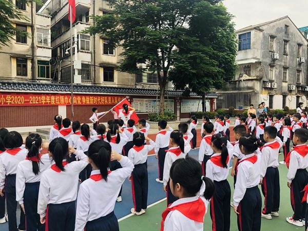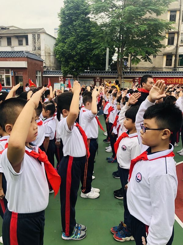 13日早上第一節(jié)課,在煙墩校區(qū)操場(chǎng)上,舉行 2020學(xué)年第一批新生入隊(duì)儀式。一、二、三年級(jí)全體師生參加活動(dòng)。