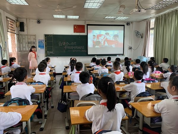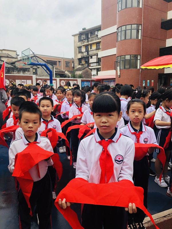 活動(dòng)主題是童心永向黨,爭(zhēng)做新時(shí)代好隊(duì)員。全體立正,儀式開(kāi)始。出旗,奏出旗曲,全體隊(duì)員敬禮,唱隊(duì)歌,大隊(duì)委員會(huì)宣讀組建二年級(jí)少先隊(duì)組織決定,大隊(duì)輔導(dǎo)員張志婷老師宣布新隊(duì)員名單。三年級(jí)隊(duì)員為新隊(duì)員及新輔導(dǎo)員授紅領(lǐng)巾,佩戴好紅領(lǐng)巾后互敬隊(duì)禮;新隊(duì)員宣誓,由大隊(duì)輔導(dǎo)員領(lǐng)誓;然后吳嬋娟主任為新建中隊(duì)授中隊(duì)旗,為新建中隊(duì)聘請(qǐng)中隊(duì)輔導(dǎo)員,授聘書(shū);新隊(duì)員代表區(qū)艷明老師講話,大隊(duì)輔導(dǎo)員講話,呼號(hào),退旗,奏退旗曲,全體隊(duì)員敬禮。整個(gè)儀式在圓滿和諧的氣氛中圓滿落下帷幕。