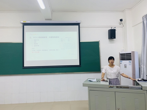 首先,德育主任吳嬋娟老師總結了開學以來的總體工作情況,肯定了班主任新學期工作的盡職盡責,同時也指出了班主任工作中仍需努力改善的問題與不足。緊接著,吳主任針對“班會與隊會”、“學校學期工作安排”、“關注心理健康教育”、“做好學生的文明禮儀教育”、“做好志愿服務工作”等重點內容進行工作安排。會議上,吳主任清晰地介紹了班會與隊會的區(qū)別與注意事項,并強調重視主題班會的教育意義,注重滲透中華優(yōu)秀傳統(tǒng)節(jié)日的教育內容,讓學生在主題班會中學文化、養(yǎng)習慣。此外,關于班主任組織發(fā)動“我要上校慶”活動時應注意做好組織指導工作與后盾支持工作,并時刻注意學生的排練安全。關注學生,教育學生是班主任工作的核心,在此吳主任也強調班主任應與學校協(xié)力關注學生心理健康教育,關注特殊學生群體,并且在常規(guī)教學中滲透文明禮儀教育,以幫助學生養(yǎng)成良好的行為習慣。最后,吳主任根據開學以來志愿服務工作的總體情況進行總結,并提醒班主任明確該工作的主旨——主體不變,相互配合,相互支持。