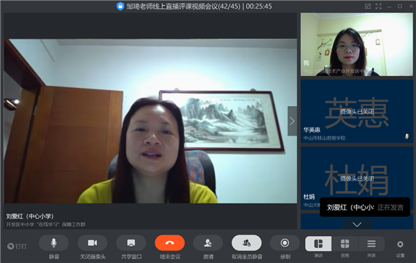 4月22日上午9點(diǎn)30分,在釘釘平臺(tái),一場(chǎng)在云端的英語(yǔ)教學(xué)研討活動(dòng)開(kāi)始了。開(kāi)發(fā)區(qū)中心小學(xué)五1、五2班的同學(xué)們以及開(kāi)發(fā)區(qū)中心小學(xué)、開(kāi)發(fā)區(qū)第三小學(xué)、開(kāi)發(fā)區(qū)第五小學(xué)的英語(yǔ)老師們參與了此次活動(dòng)。本次活動(dòng)由開(kāi)發(fā)區(qū)中心小學(xué)英語(yǔ)科組長(zhǎng)劉付仲怡老師主持,由開(kāi)發(fā)區(qū)中心小學(xué)鄒琦老師帶來(lái)一節(jié)五年級(jí)英語(yǔ)復(fù)習(xí)課,向大家展示釘釘直播教學(xué)的魅力。