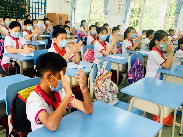 此次主題班會(huì)活動(dòng)在各班老師的有序組織下進(jìn)行。教室里,孩子們身著禮服,佩戴鮮艷紅領(lǐng)巾,坐姿端正,認(rèn)真聆聽(tīng)臺(tái)上同學(xué)分享他們心中的抗“疫”英雄故事?!拔乙恢痹趯ふ乙粋€(gè)英雄的榜樣……” “當(dāng)疫情暴發(fā)時(shí),他又義無(wú)反顧地去了武漢……”聽(tīng)到一個(gè)個(gè)感人的故事,教室里一次次響起了熱烈的掌聲!英雄們的故事,將像春天的種子,在每個(gè)同學(xué)的心里都種下了一顆英雄夢(mèng),而這些掌聲,代表了孩子們對(duì)英雄們崇高的敬仰與欽佩!能在疫情面前挺身而出的人,有科學(xué)家、有醫(yī)生、有快遞員、有保安等各行各業(yè)的人,他們是身邊人,他們是普通人,而他們就是英雄,他們就是我們學(xué)習(xí)的榜樣!
