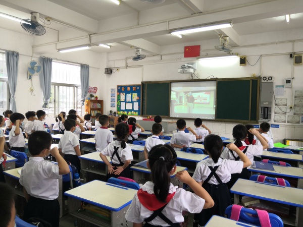 此次入隊儀式雖然是校園直播分班進行,但儀式統(tǒng)一按學校直播指引全體一年級一起行動,入隊的氛圍卻絲毫不減。各班的孩子們在班級里收看入隊儀式,感受入隊的光榮時刻。臺上,兩位小主持人精神抖擻,護旗手們步伐矯健。教室里,孩子們坐姿端正,莊嚴肅穆。當輔導員黃玲老師宣讀新隊員名單后,在各班老師有序組織下,為一年級的新隊員戴上了鮮艷的紅領巾。當新隊員舉起右拳、許下誓言的那一刻,當他們向隊旗敬起隊禮的那一刻,孩子們多么驕傲而自豪,多么光榮而又興奮?。?nbsp;