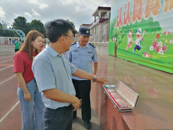 劉警官現(xiàn)場(chǎng)向?qū)W生分發(fā)宣傳單張,讓學(xué)生自己學(xué)習(xí),并發(fā)揮小手拉大手的力量,向家長普及防詐騙、禁毒的知識(shí),提高防詐騙、禁毒的意識(shí)。