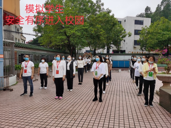為確保疫情防控演練實效,開發(fā)區(qū)第一小學在接到區(qū)防控部門的通知后,經(jīng)學校黨支部支委和行政班子研究迅速成立了學校公共衛(wèi)生安全應急領(lǐng)導小組,由全體學校行政、級科組長以及黨員教師組成本次防控演練“先遣隊”,率先培訓,參與演練。演練前,學校召開了應急演練培訓會議,進一步壓緊、壓實演練責任和防控預案的實效性、目的性;在常務副校長劉光旗的領(lǐng)導下,全體演練成員認真學習學校疫情防控演練方案,進一步明確了演練目標與流程。此次演練活動分為學生篇和教職工篇,演練通過真實情境模擬了師生在校一天主要活動場景的防控操作過程,主要包括入校晨檢、有序入班、課上突發(fā)情況、規(guī)范就餐、適當午休、錯峰放學及異常情況處理等7個防控場景的模擬演練,讓教師親自來感受并檢測開學演練方案是否完備,體驗明確防控流程及要求,也為日后正式有序開學做好準備。